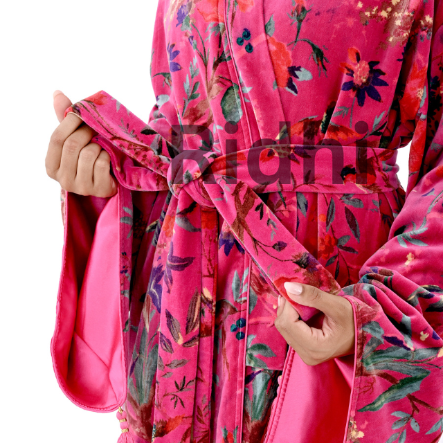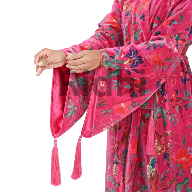 Pink Bird Velvet Fabric Kimono Thermal 100% Velvet Beach Swim Cover-Up Unisex Floral Design Eco-Friendly Lace Natural Waist