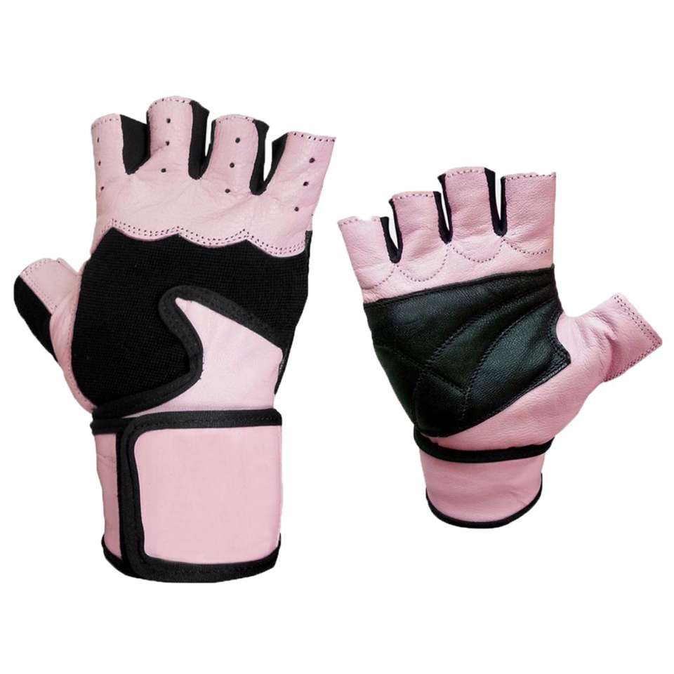 Pink Black Fingerless Gym Gloves for Women with Wrist Wrap and Padded Palm for Weightlifting Training
