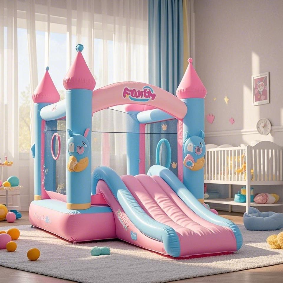 Pink Blue Kids Inflatable Jumping House Castle Indoor Playground with Slide Bouncy & Blower-for Kid Parties