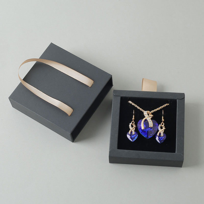 Pink Cardboard Paper Jewelry Box Custom Logo Drawer Packaging for Rings Necklaces Luxury Black Paper Slide Jewellery Gift Box