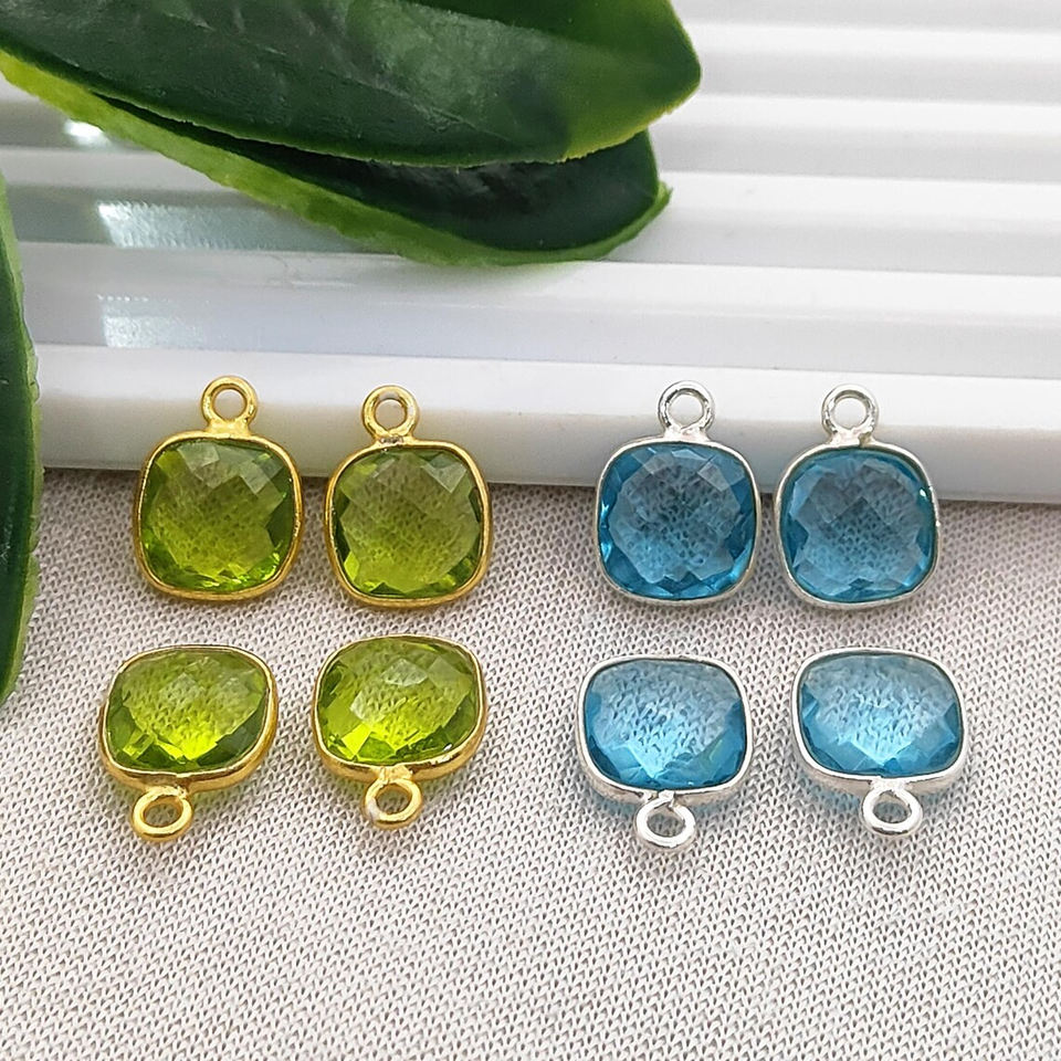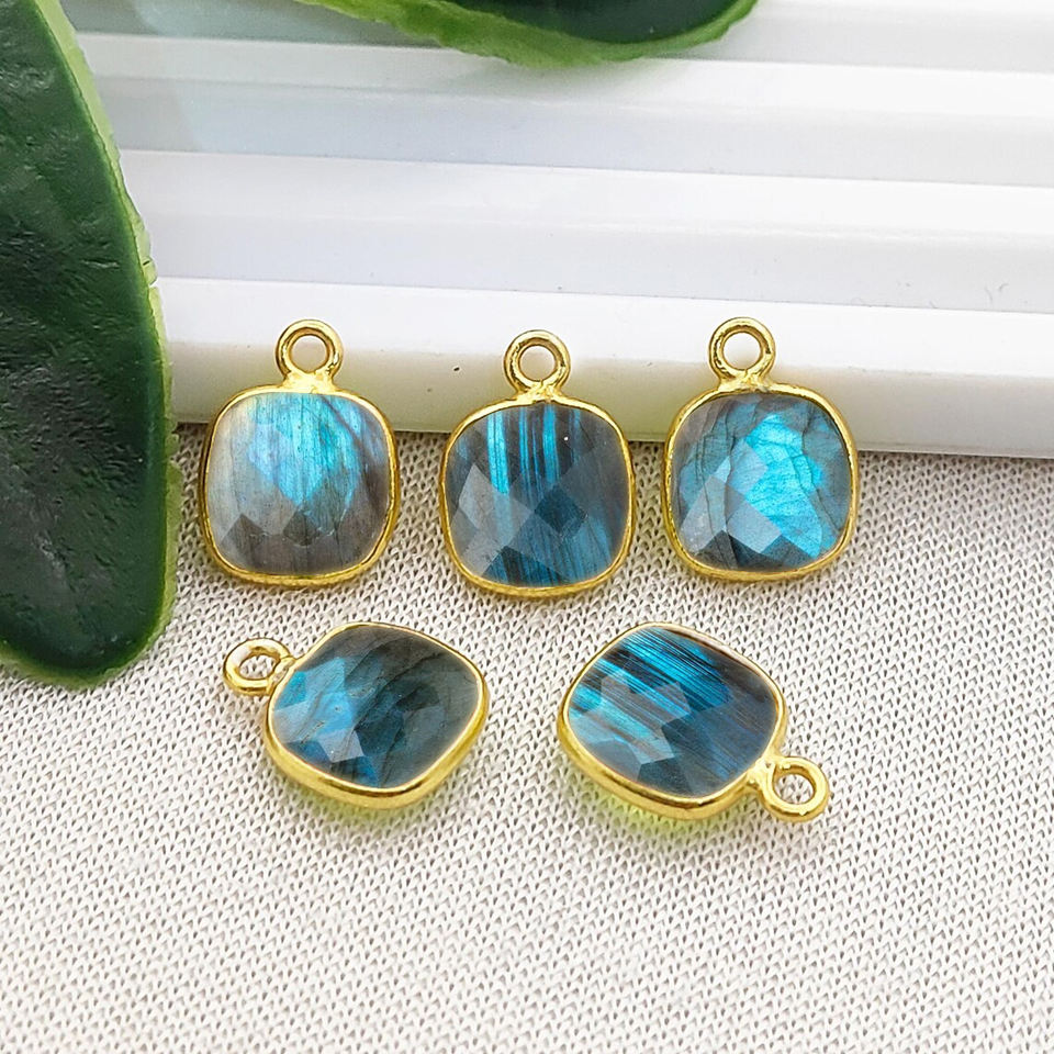 Pink Chalcedony 8mm Cushion Charms 925 Sterling Silver Bezel Set Pendant Gold Plated Chalcedony Charms For Jewelry Making Charms