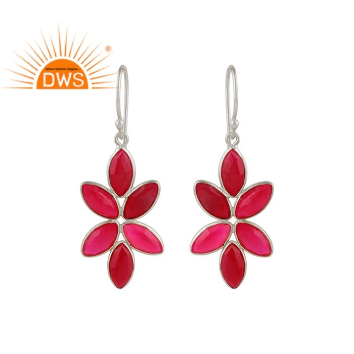 Pink Chalcedony Gemstone Drop Earrings Wedding Sterling Silver Wholesale Jewelry Designer Trendy Women's