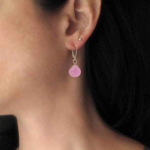 Pink Chalcedony Heart Drop Earrings Faceted Gemstone with Gold Plated Wire Wrap, Elegant Lever-Back Dangle Earrings