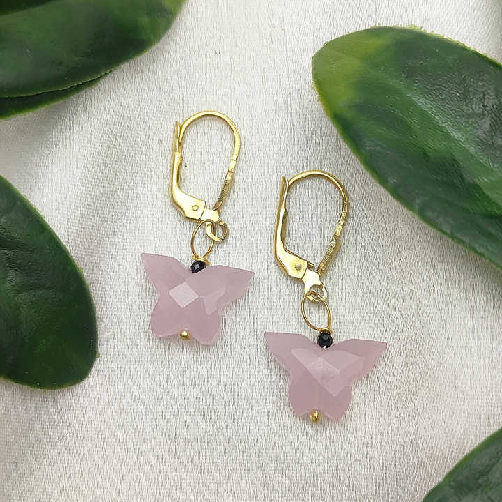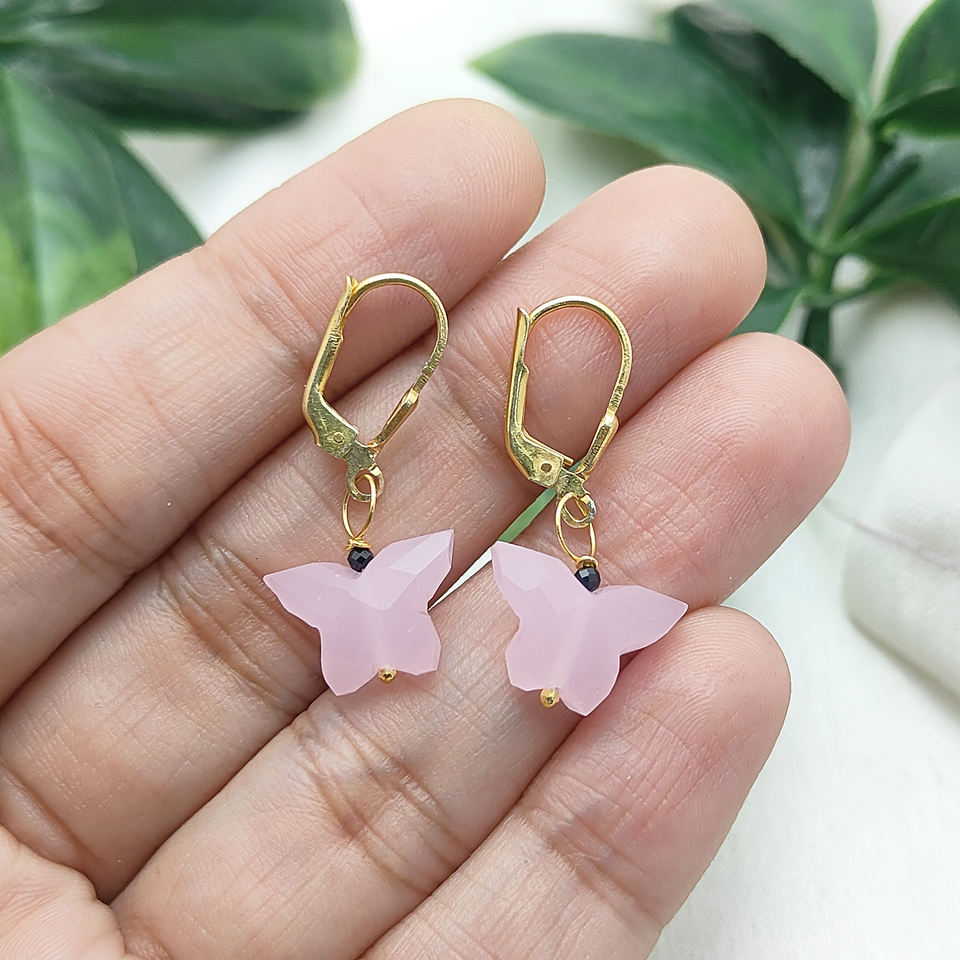 Pink Chalecdony Gemstone Earrings Sterling Silver 10x14mm Butterfly Carving Wire Wrapped Stone Earrings Indian Supplier