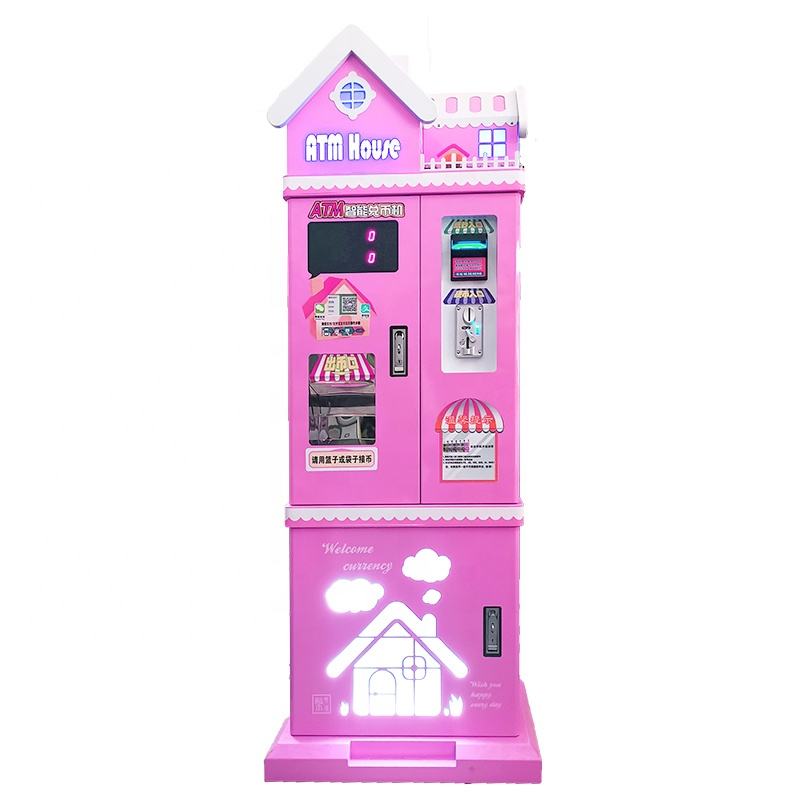 Pink Coin-Operated ATM House Machine Metal Coin Exchange and Vending Game Equipment