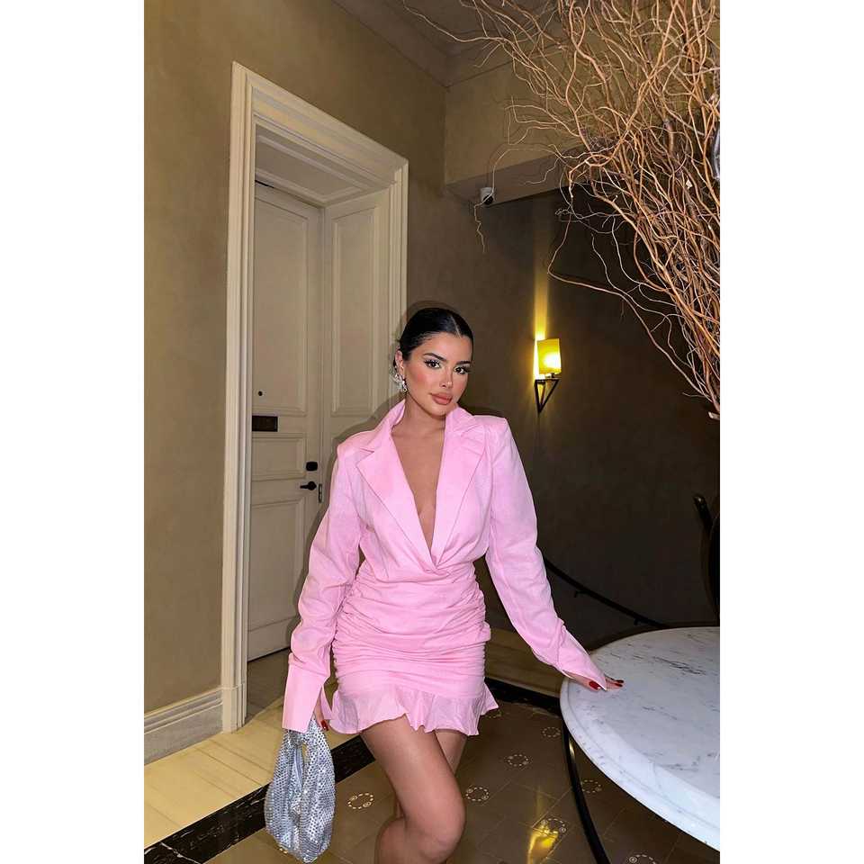 Pink Collar Mini Cocktail Dress