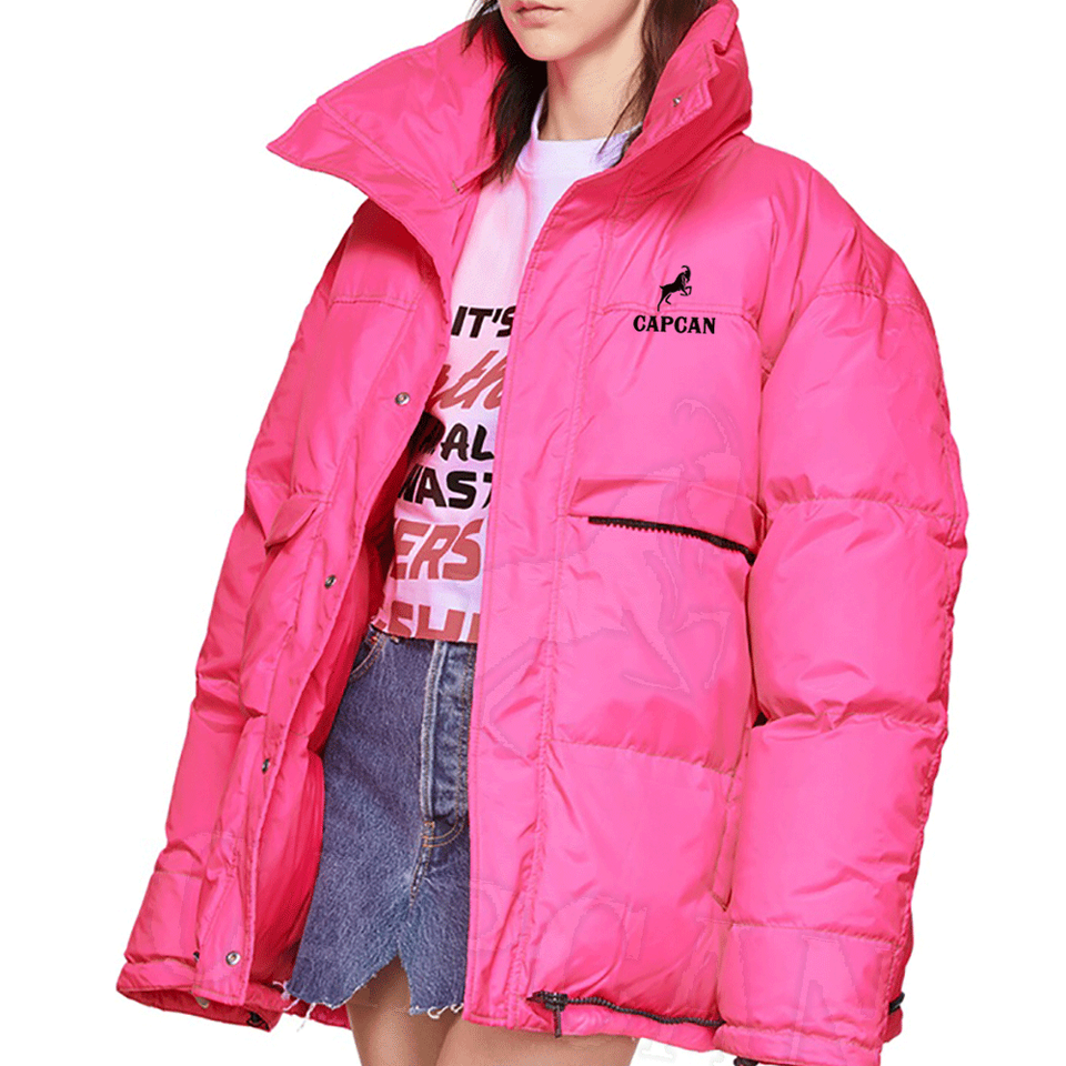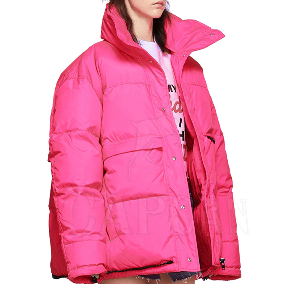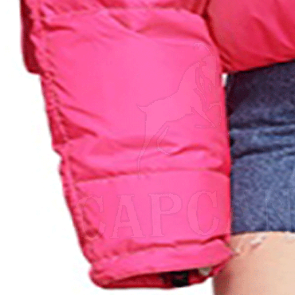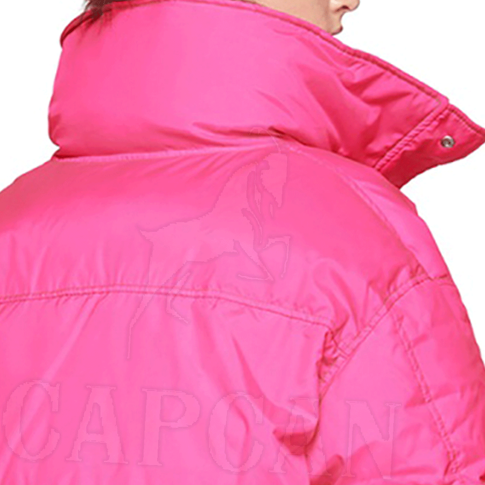Pink Cropped Bomber Jacket for Women Breathable Puffer with Long Sleeves Embroidery Decoration Customizable Size Wool Lining