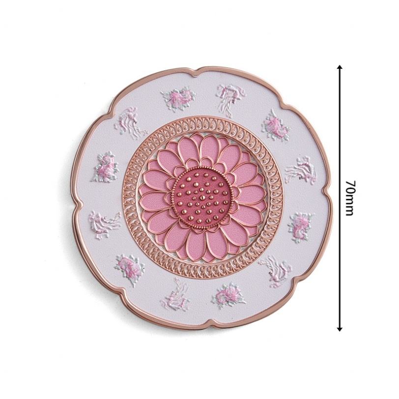 Pink Color Custom Flower Pattern Chinese Style Embossed Logo CMYK UV Printing Single Side Small Pocket Mirror