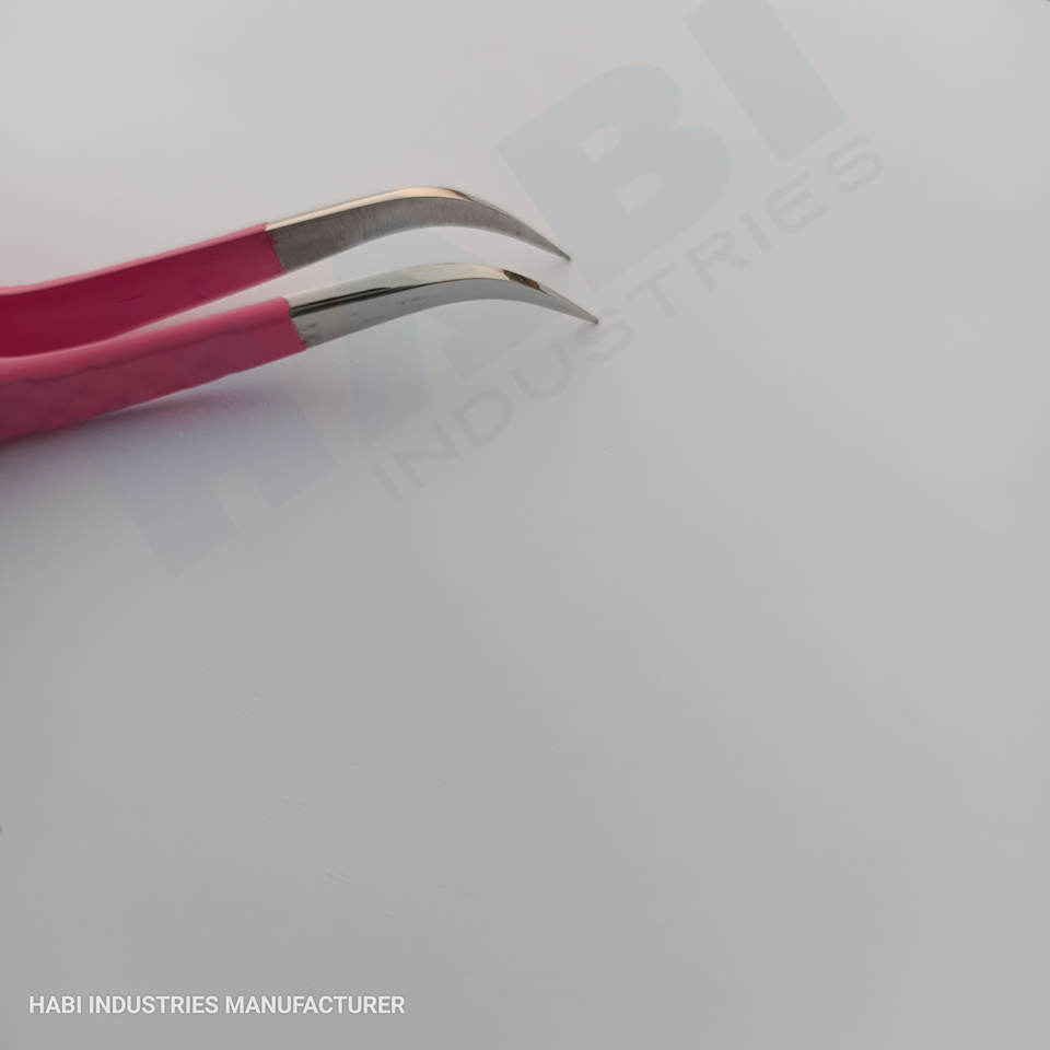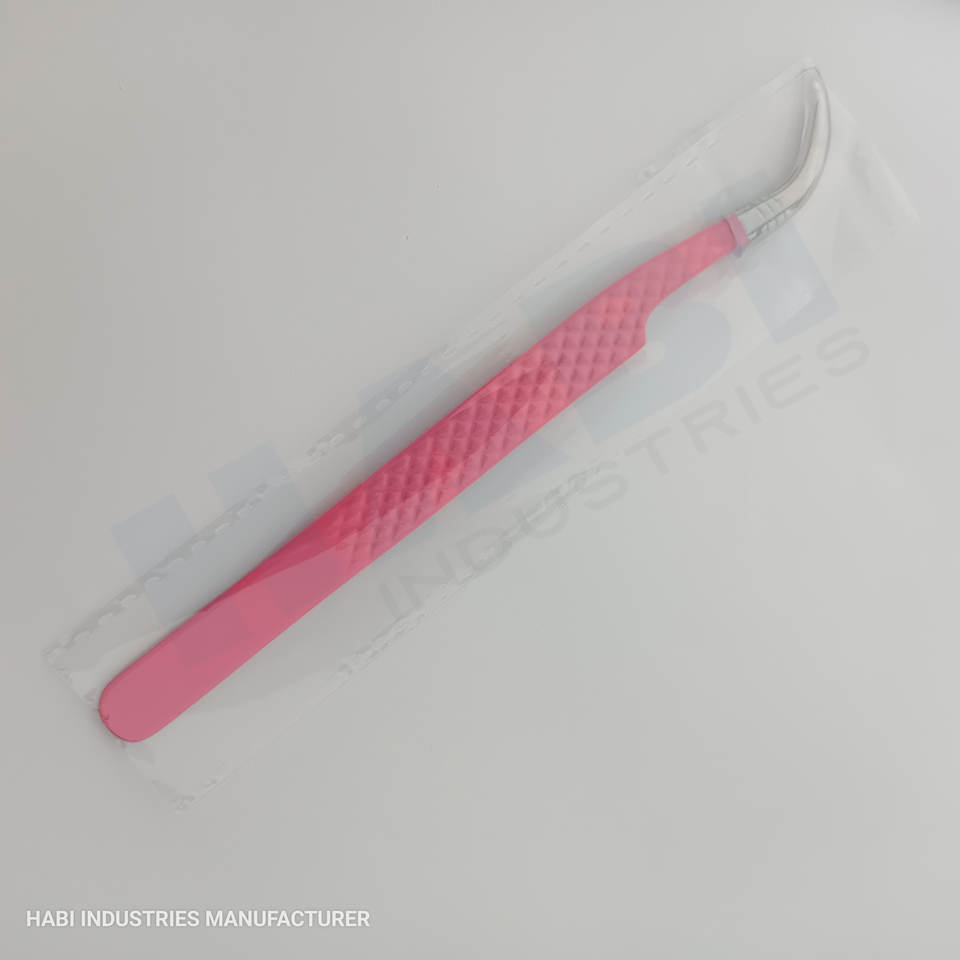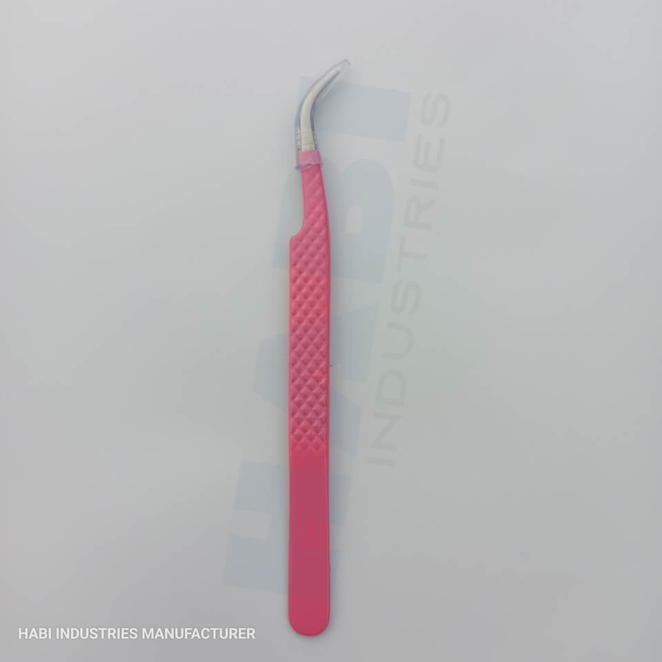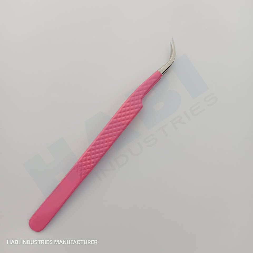 Pink Color Eyelash Tweezer Wholesaler Custom Logo Curved Tip Eyelash Tweezer Suppliers Beauty Salon Lashes Tools Manufacturer