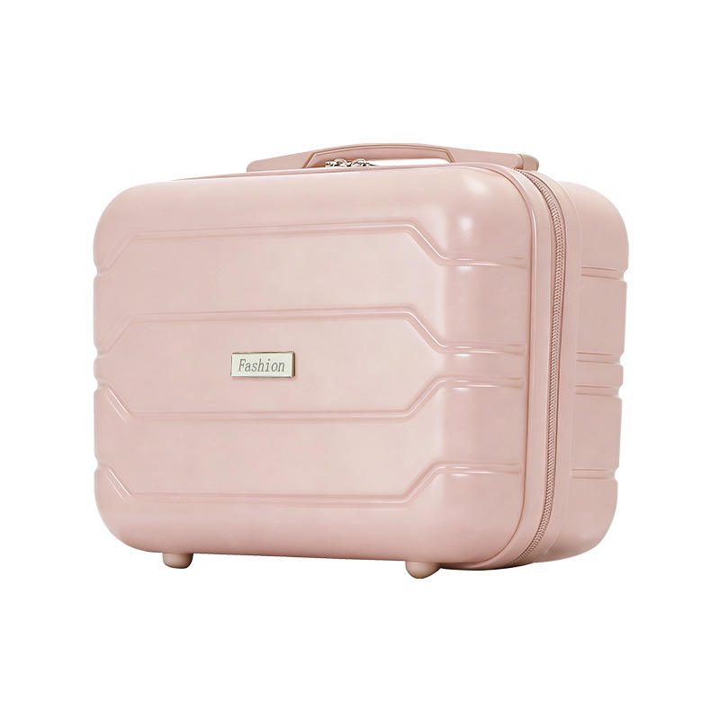 Pink Cosmetic Case 14 Inch Lightweight Metal Corner Makeup Bag For Travel Storage Solid Color Zipper Closure