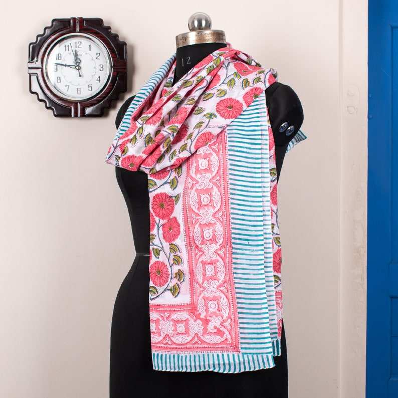Pink Cotton Beach Sarong Scarf Block Print Summer Shawl and Swimwear Coverup
