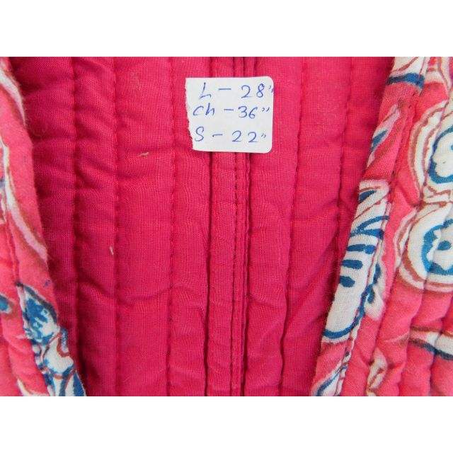 Pink Cotton Block Printed Quilted Jacket Women Traditional Party Wear Long Sleeve Coat
