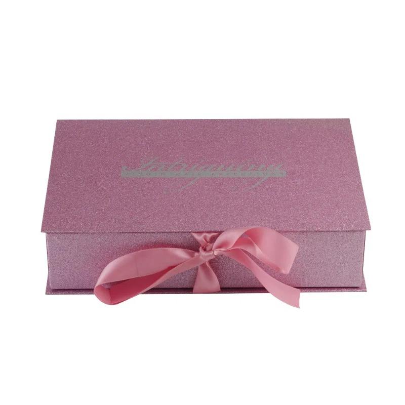 Pink Custom Logo Colorful Printed Fancy Paper Cardboard Luxury Gift Box with Ribbon