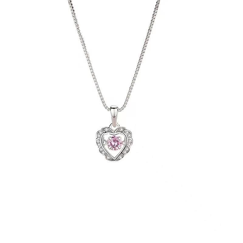 Trendy Pink Dancing Heart Charm Pendant Necklace Sterling Silver Link Chain Romantic Love Symbol Valentine's Day Party Gift