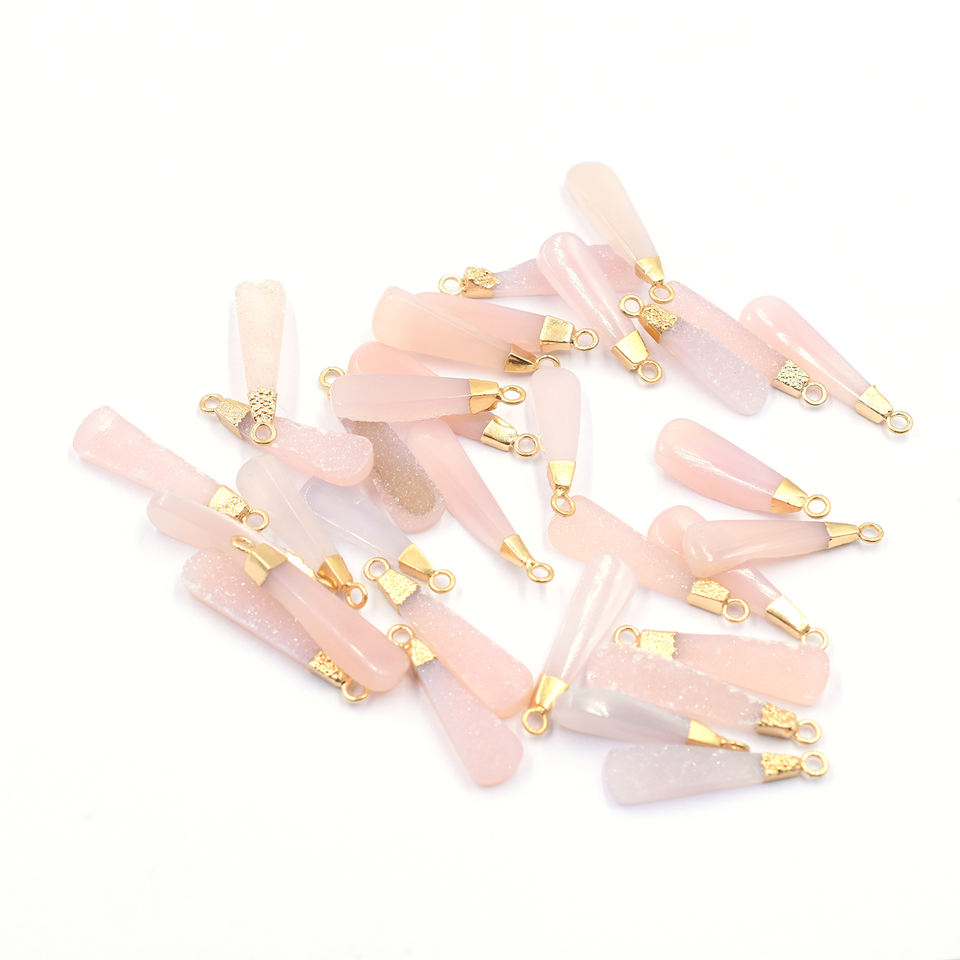 Product Name:Pink Druzy 28 To 30 MM With Bail Long Drop Shape Gold Plated Pendant