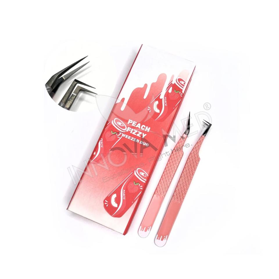Pink Ergonomic Pointed Stainless Steel Tweezers Classic Volume Eyelash Extensions Berry Cheesecake Lash Tweezer Diamond Textured