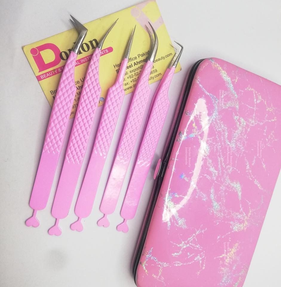 Product name:Pink Color Eyelash Tweezers with Case