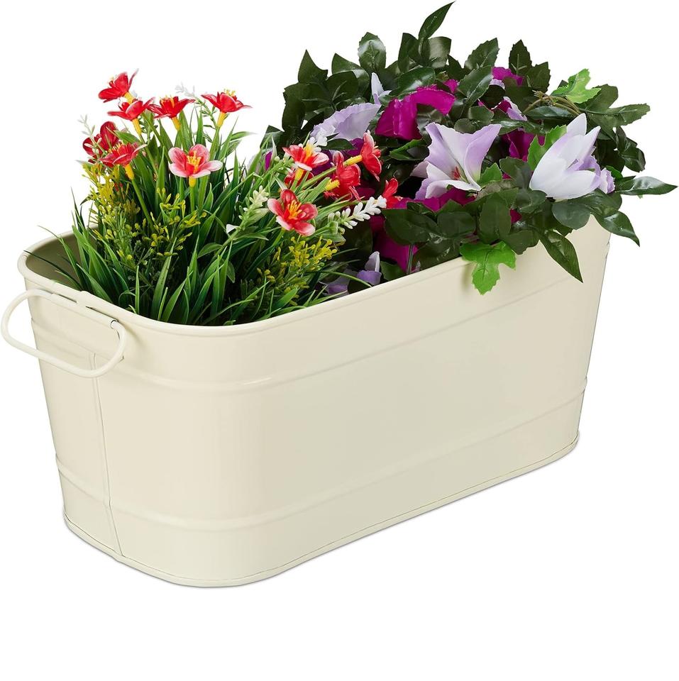 Pink Finished Galvanized Metal Flower Planter with Handle Oval Shape For Home Balcony Patio Garden Decor Planters