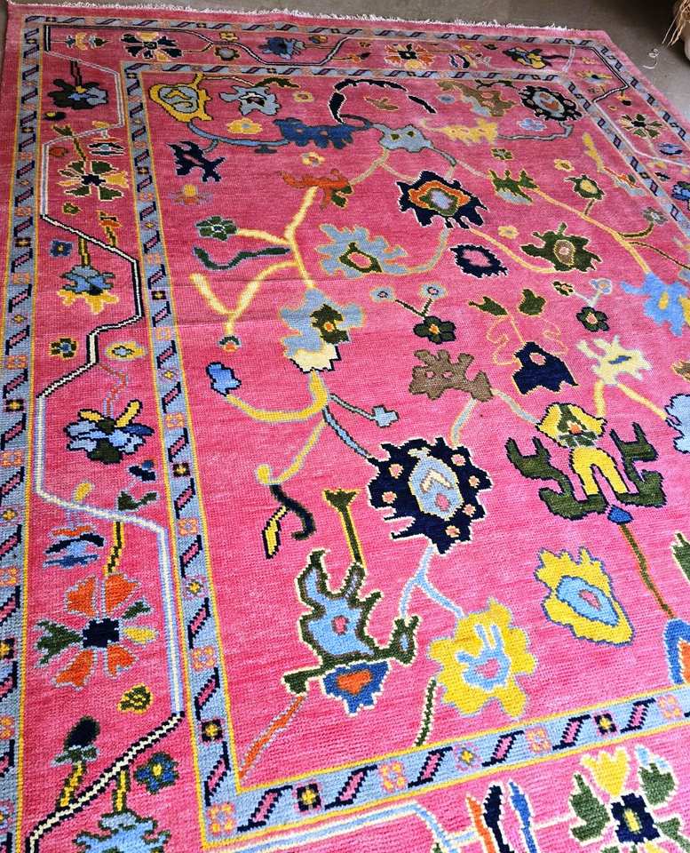 Small Runner Oushak Rug Hand Knotted:Oushak Rug Hand Knotted Pink wool rug