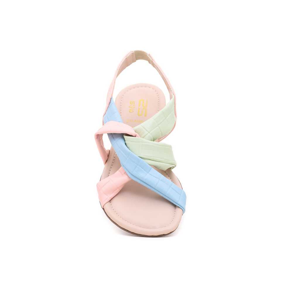 Pink Formal Gladiator Sandal FR4961 Ankle Strap Heels Lace-up Closure Pointed Open Toe Fashionable Lace Upper Mesh for Summer