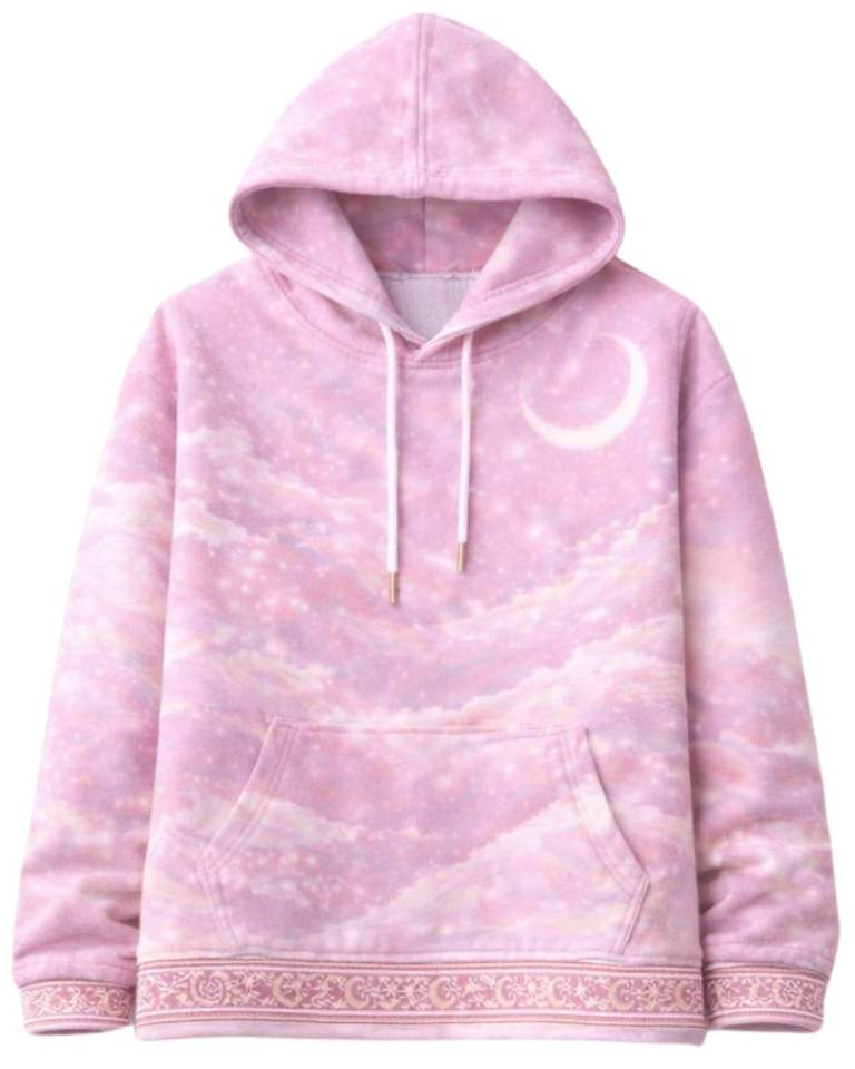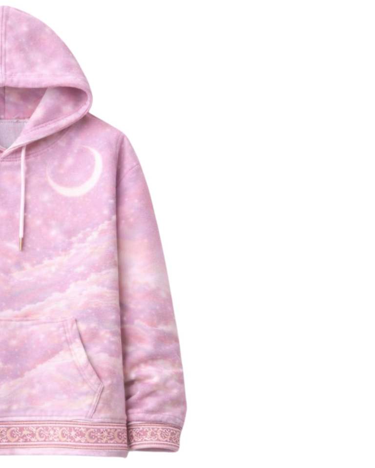 Pink Galaxy Print Hoodie And Jogger Set Women Cotton Polyester Fleece Moon Graphic Cozy Casual Streetwear Outfit For Winter Top