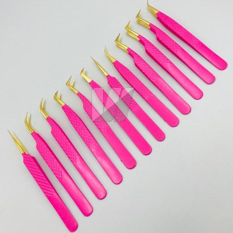 Pink Gold Japanese Stainless Steel Eyelash Extension Tweezers Custom Logo Diamond Grip Pointed Tip Volume Beauty Tool for