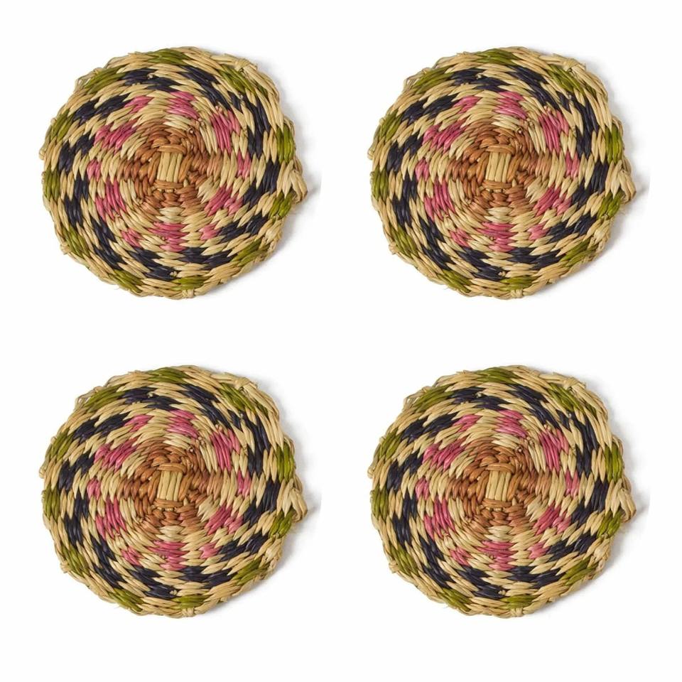 Product Name:Pink Green Blue Sweetgrass Coaster Set of 4