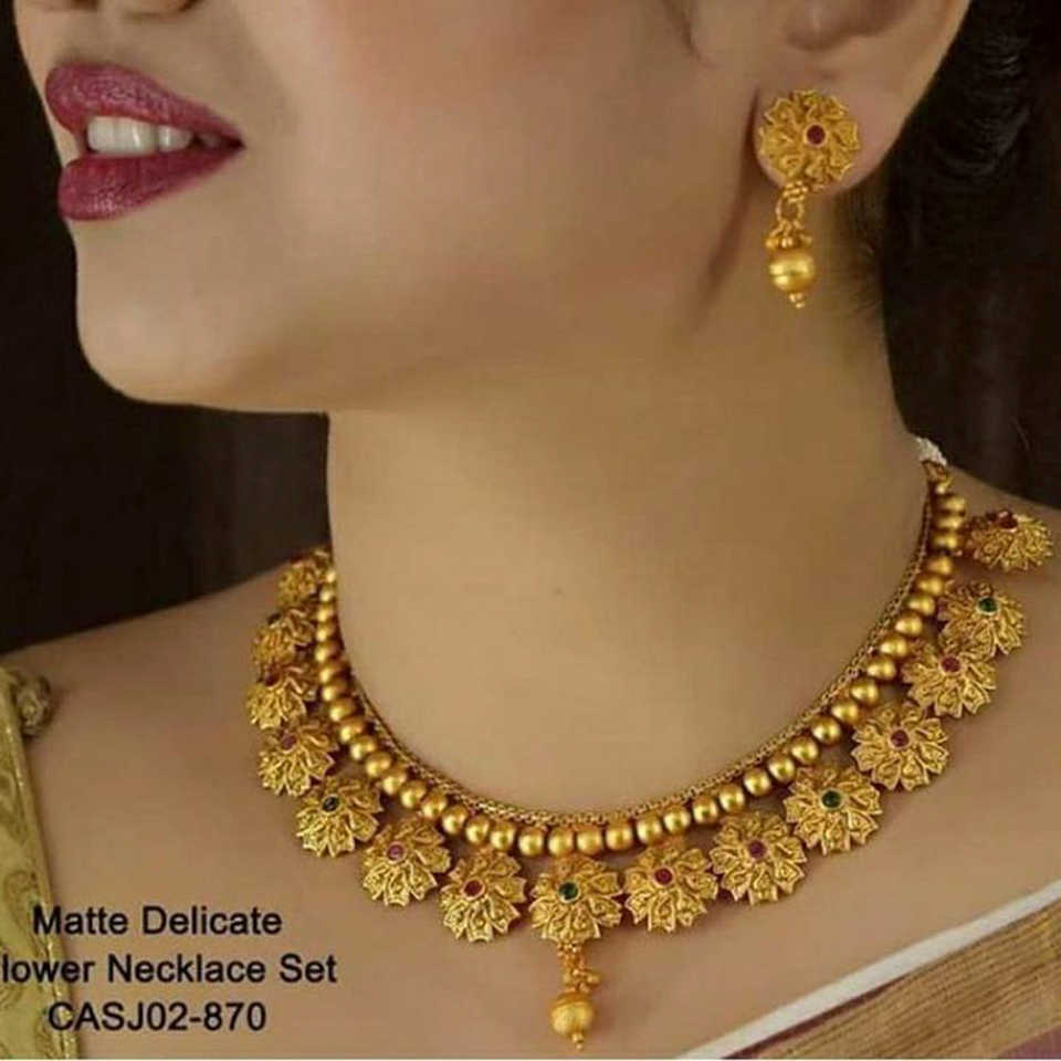 Pink & Green Pota Stone Necklace Set Gold Plated Fine Jewelry SFNECK17