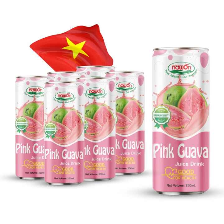 Pink Guava Juice 250ML Can Best Quality Nawon OEM NFC from Vietnam Manufacturer Free Design Free Sample GMP Certified Low MOQ