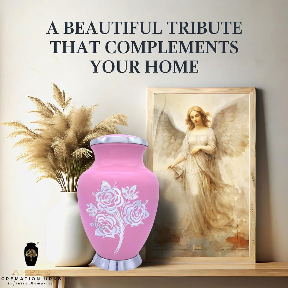 Pink Flower Handcrafted Aluminum Cremation Urn Metal Cremation Urns with Meena Coating Elegant Memorial Urn in Large & Keepsake