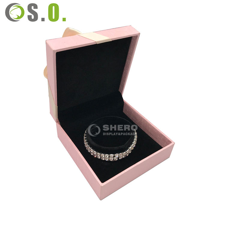Pink High Quality Wholesale Imitation Leather Paper Wedding Necklace Ring Bracelet Gift Custom Jewellery Packaging Jewelry Box
