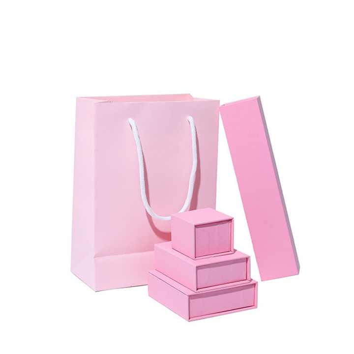 Pink Ivory Board Boxes Set Customized Logo Bracelet Ring Earring Jewelry Portable Gift Boxes Packaging case