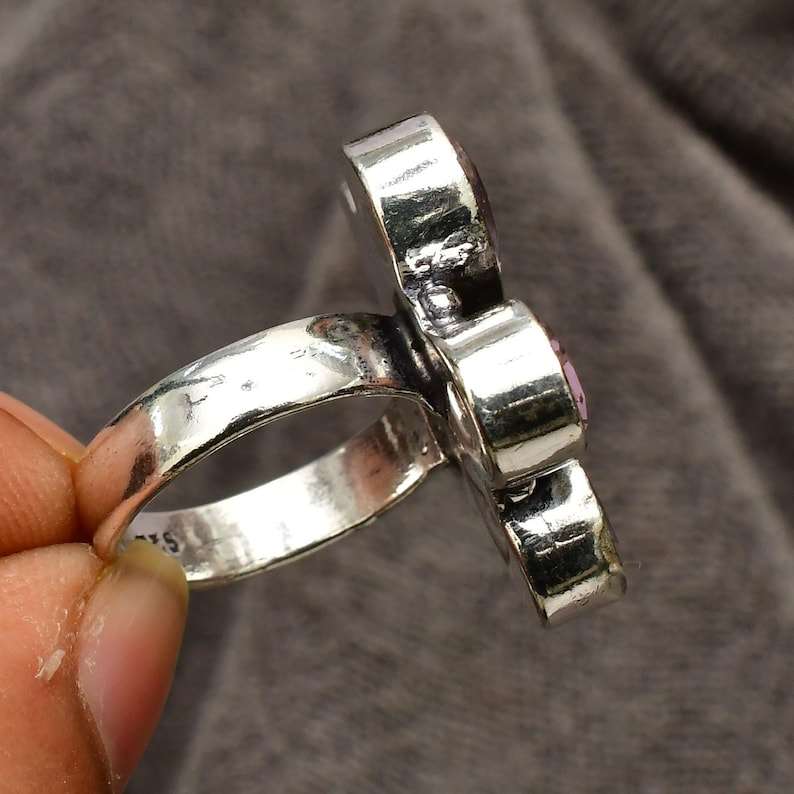 Pink Kunzite Flower Ring Handmade 925 Sterling Silver Gemstone Jewelry Natural Pink Stone Womens Ring Gift