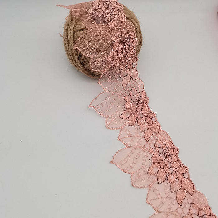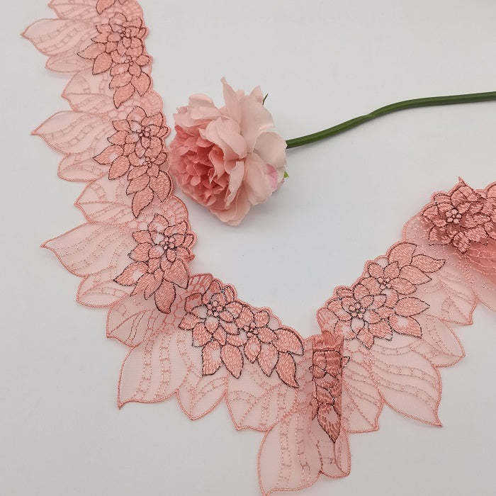 Pink Leaf Embroidery Lace Trim for Bridal Headwear Elegant Dress Decor for Weddings