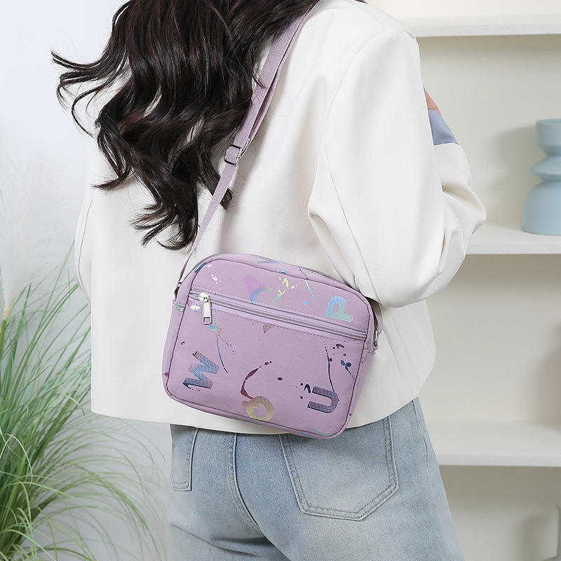 Pink Letter Print Crossbody Bag For Women Small Square Shoulder Bag With Front Zipper Pocket Portable Everyday Use Spring 2025