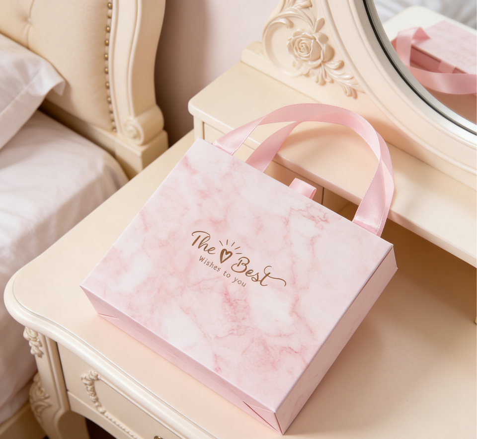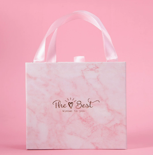 Pink Marble-Patterned Durable Paperboard Gift Box with Handle-Vietnam for Certified Recyclable Custom Size for Supermarket Use