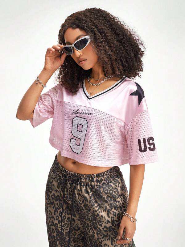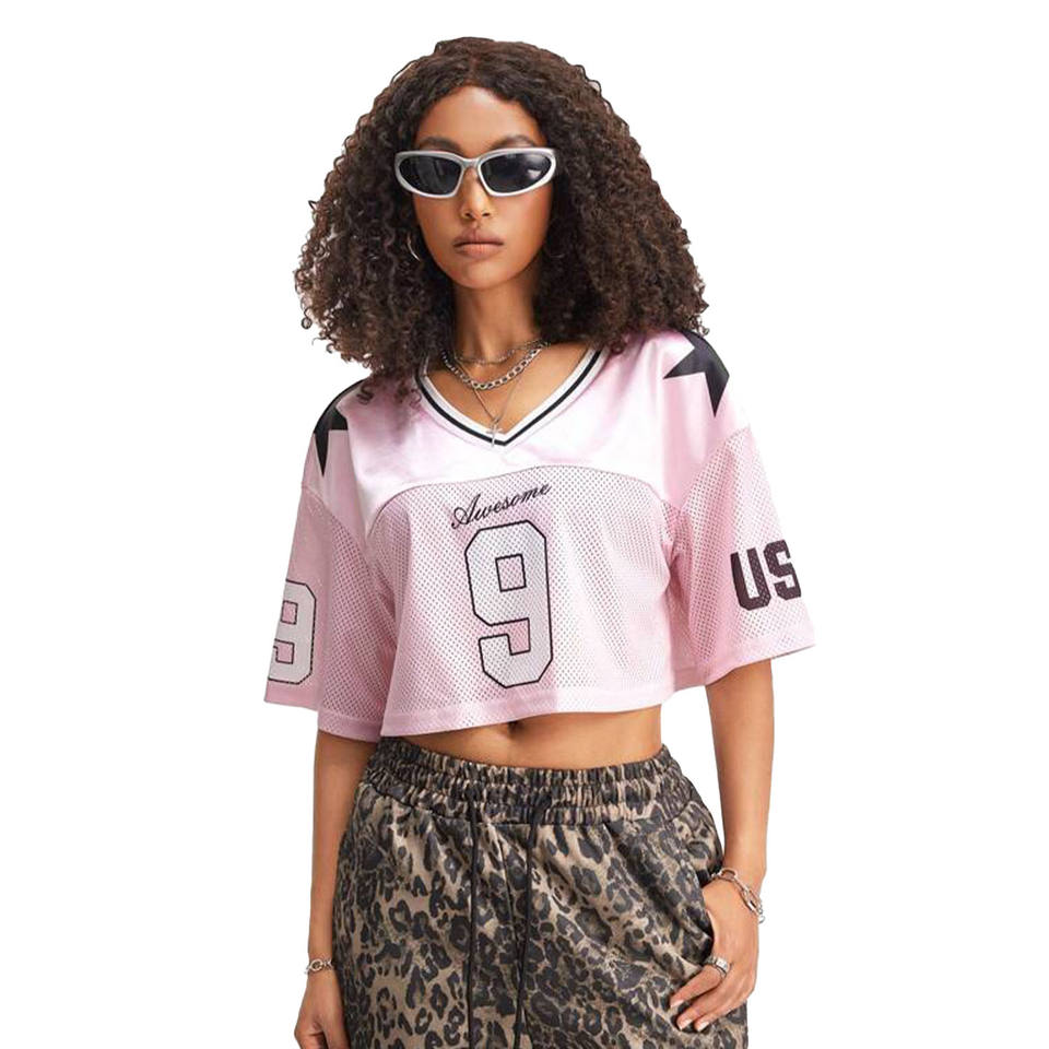 Pink Mesh Crop Football Jersey 9 Number Women Streetwear OEM Private Label Wholesale Manufacturer