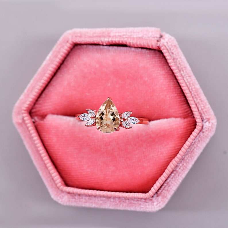 Pink Morganite Engagement Ring Rose Gold Art Deco Morganite Ring Octagon Cut Dainty Ring