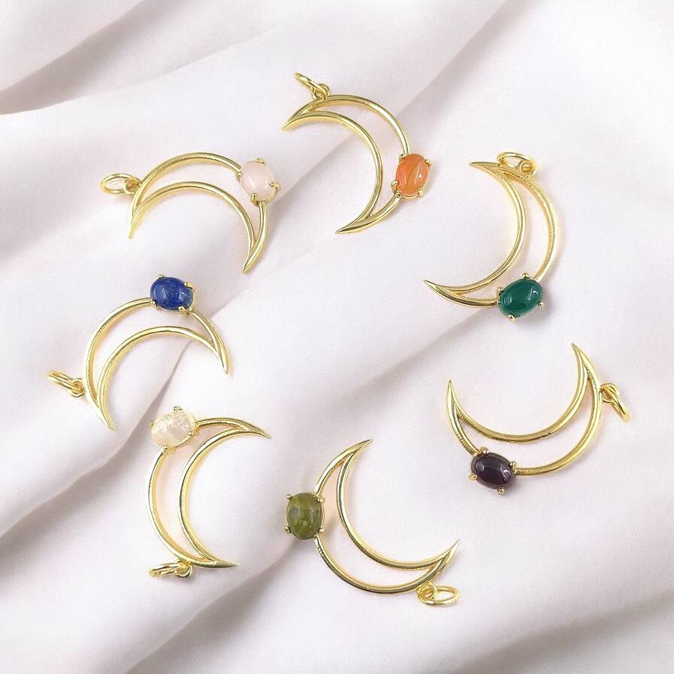 Pink Opal Pendant 8x6mm Oval Shape Pink Opal Prong Set Gold Plated Half Moon Crescent Charm Indian Jewelry Wholesale Suppliers