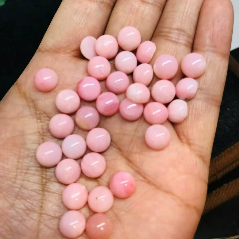 Pink Opal Round Cabochon Gemstone Pink Queen Conch Shell Loose Gemstone Handmade Pink Queen Conch Shell Heart Cabs Pink Opal