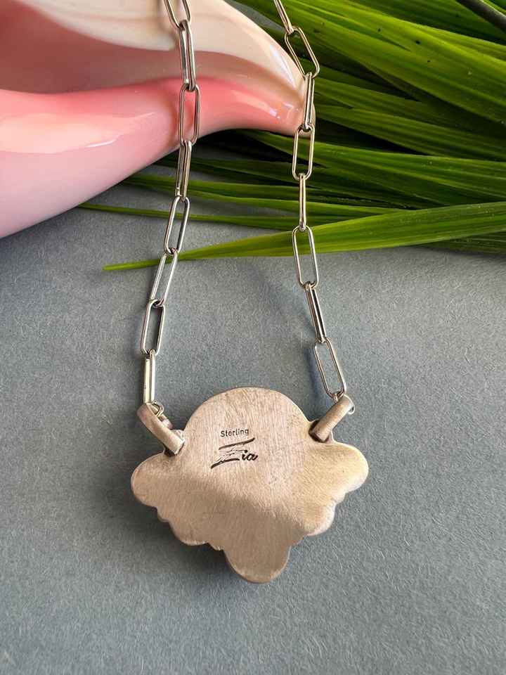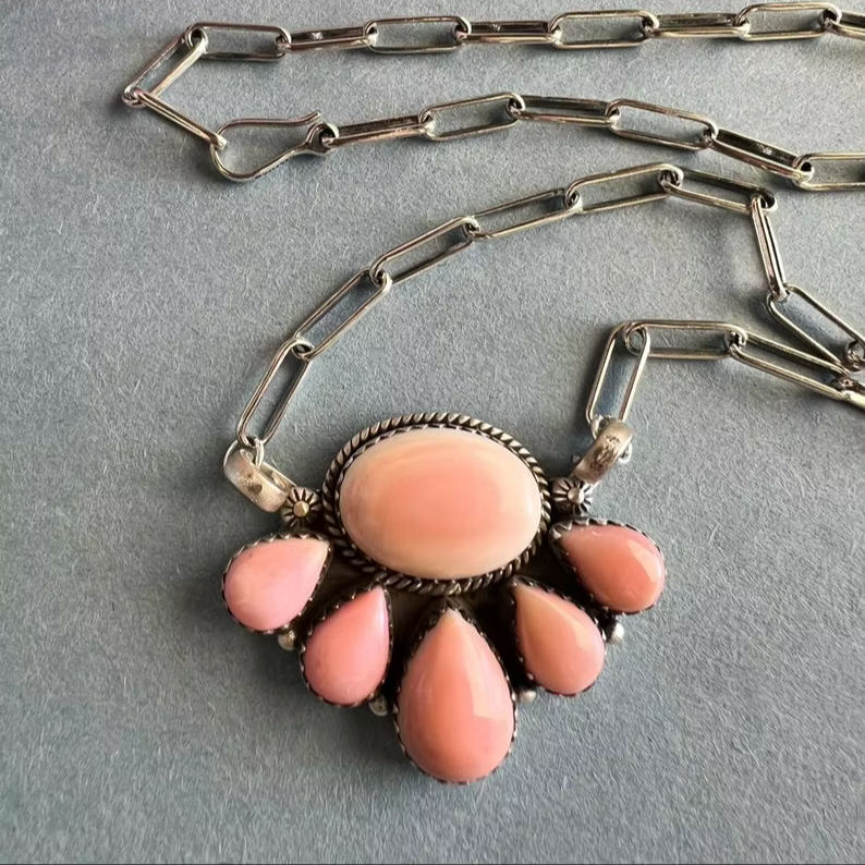 Pink Opal Shell Sterling Silver Cluster Bar Necklace 19 Inch Handmade Boho Jewelry for Women