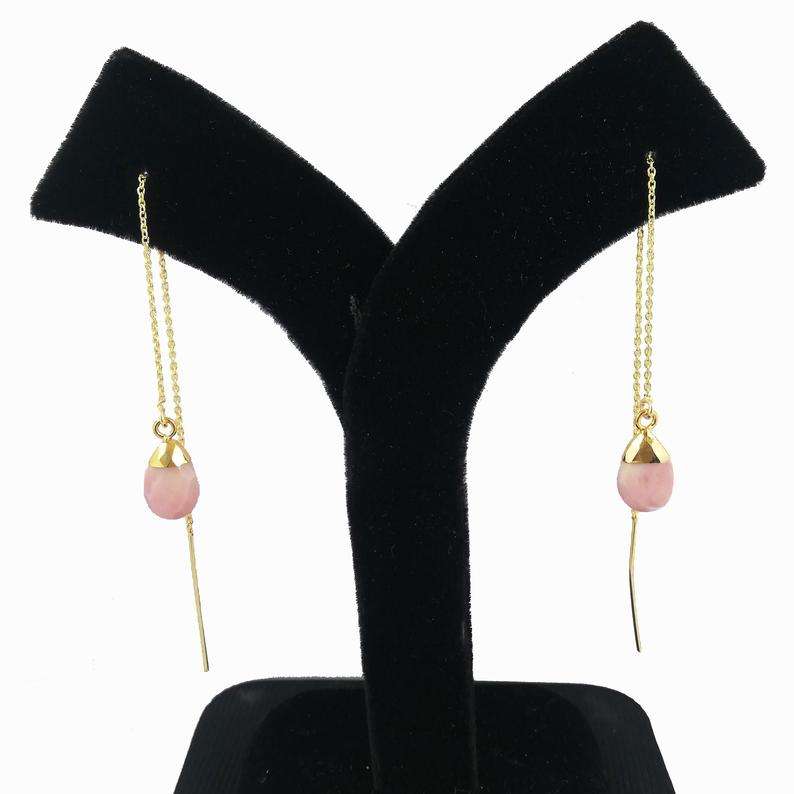 Pink Opal Stone Teardrop Shape Faceted Cut Gold Vermeil 925 Sterling Silver Threader Earrings Stone Size 13x9mm Silver Earrings