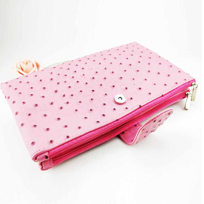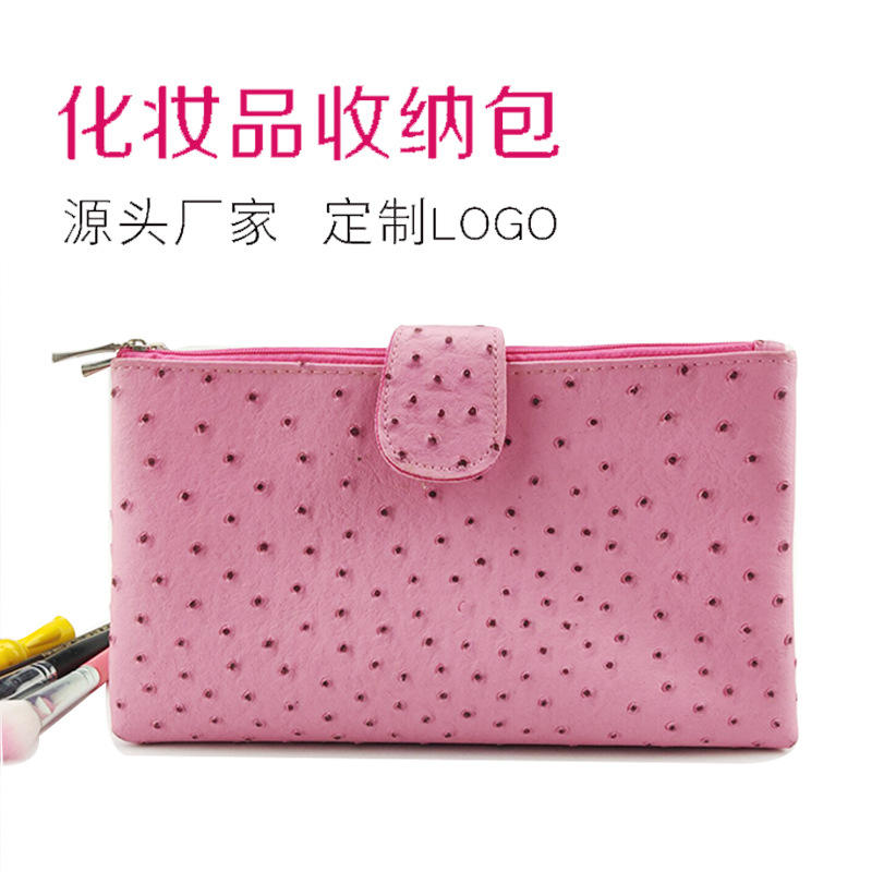 Pink Ostrich Pattern Makeup Bag With Magnetic Buckle Portable Cosmetic Case For Home Storage