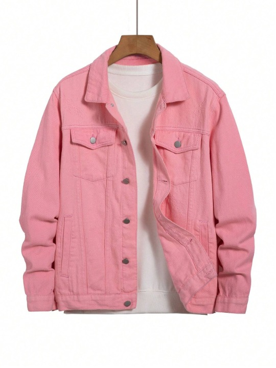 Pink Oversized Denim Jackets for Men With Full Customization / Custom Sport Style Men's Jeans Jacket for Outdoor Wear