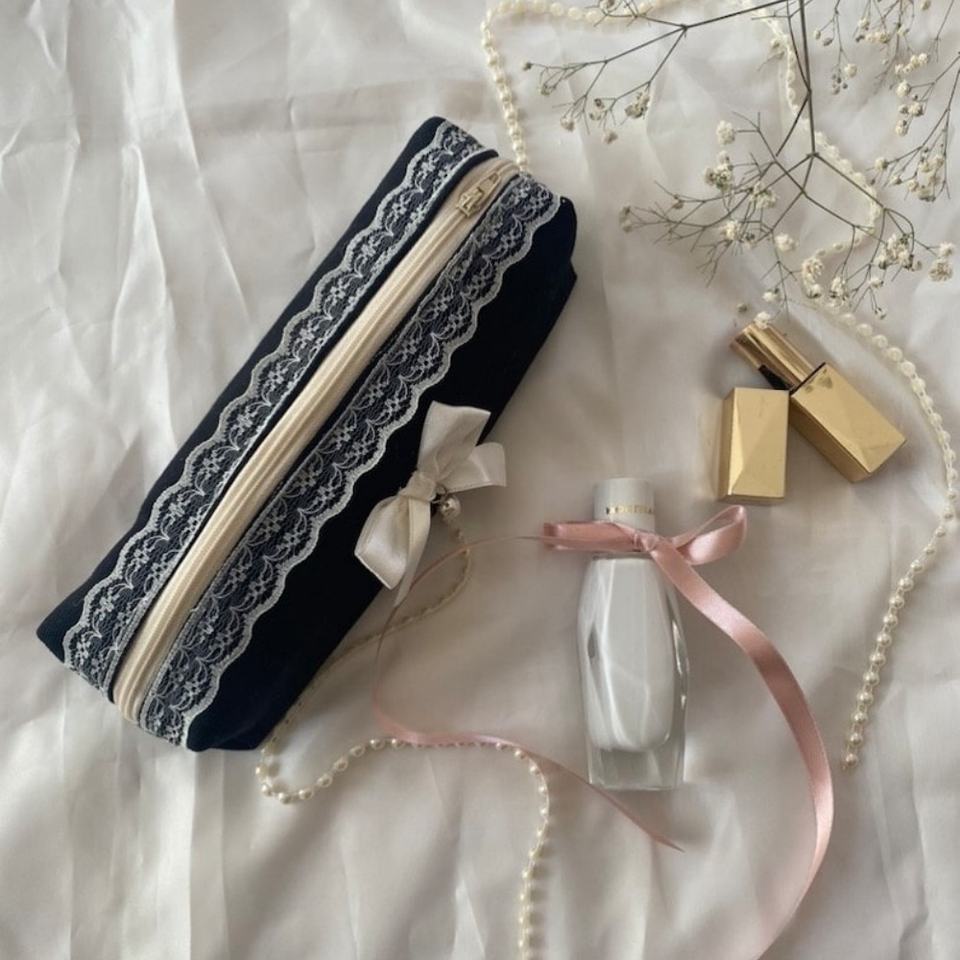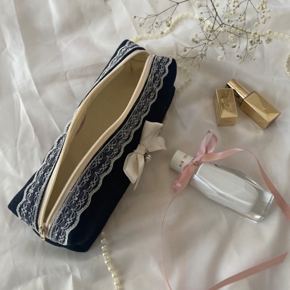 Pink Pencil Case Storage Lace Pencil Pouches Custom Kids Cute Bow Cotton Pencil Bag Back to School Zipper Pen Case for Students