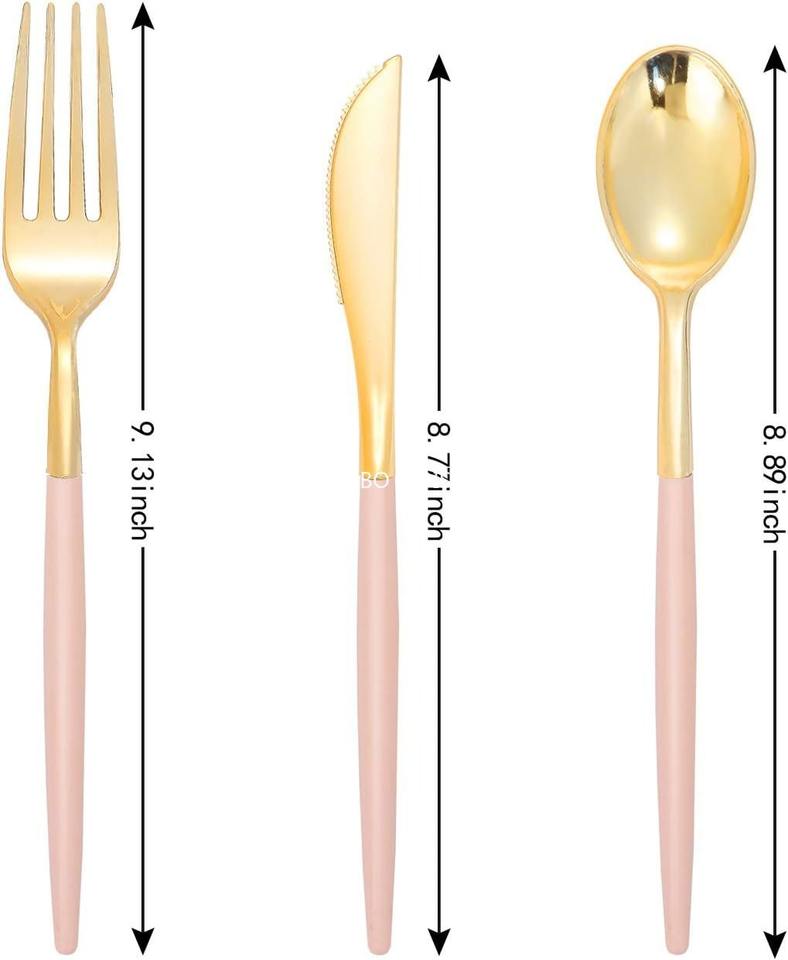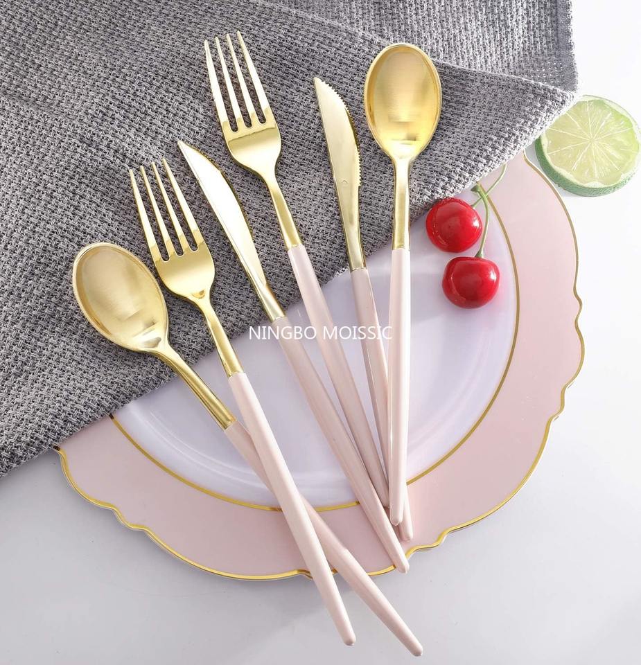 Pink Plastic Silverware Gold with Pink Handle Cutlery Set Includes for Business Gifts Made in China