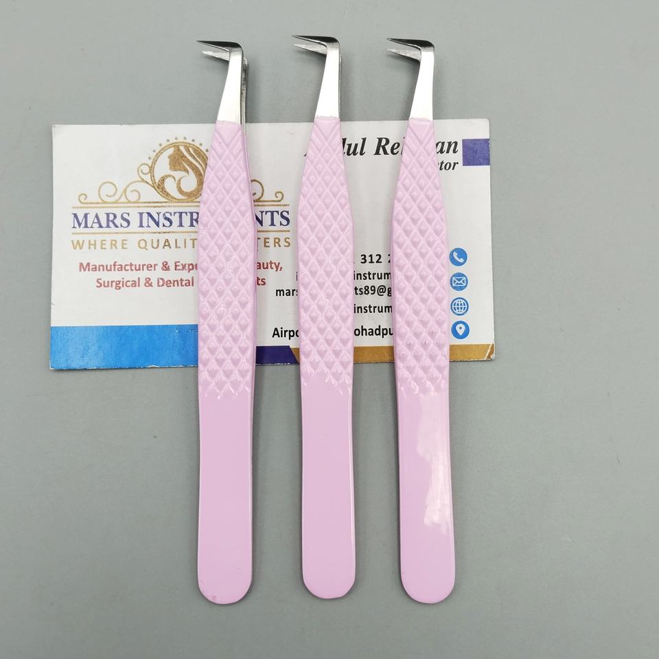Pink Powder Coated Stainless Steel Volume Tweezers with Curved Silver Tips Boot Style for Eyelash Extensions