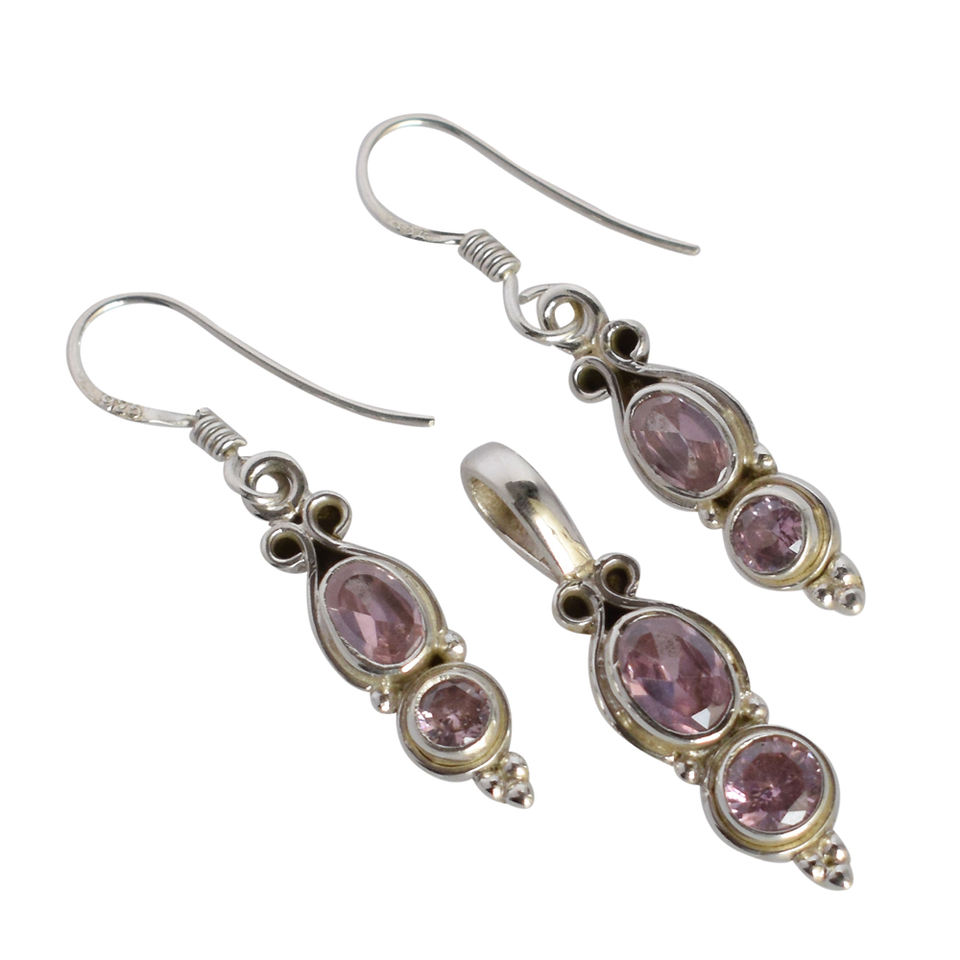 Pink Quartz Gemstone Designer Pendant Dainty Hook Earrings Set 925 Sterling Silver Best Wholesaler Solid Jewelry Trendy