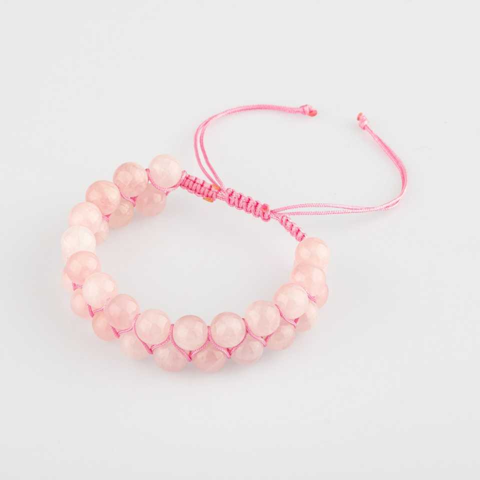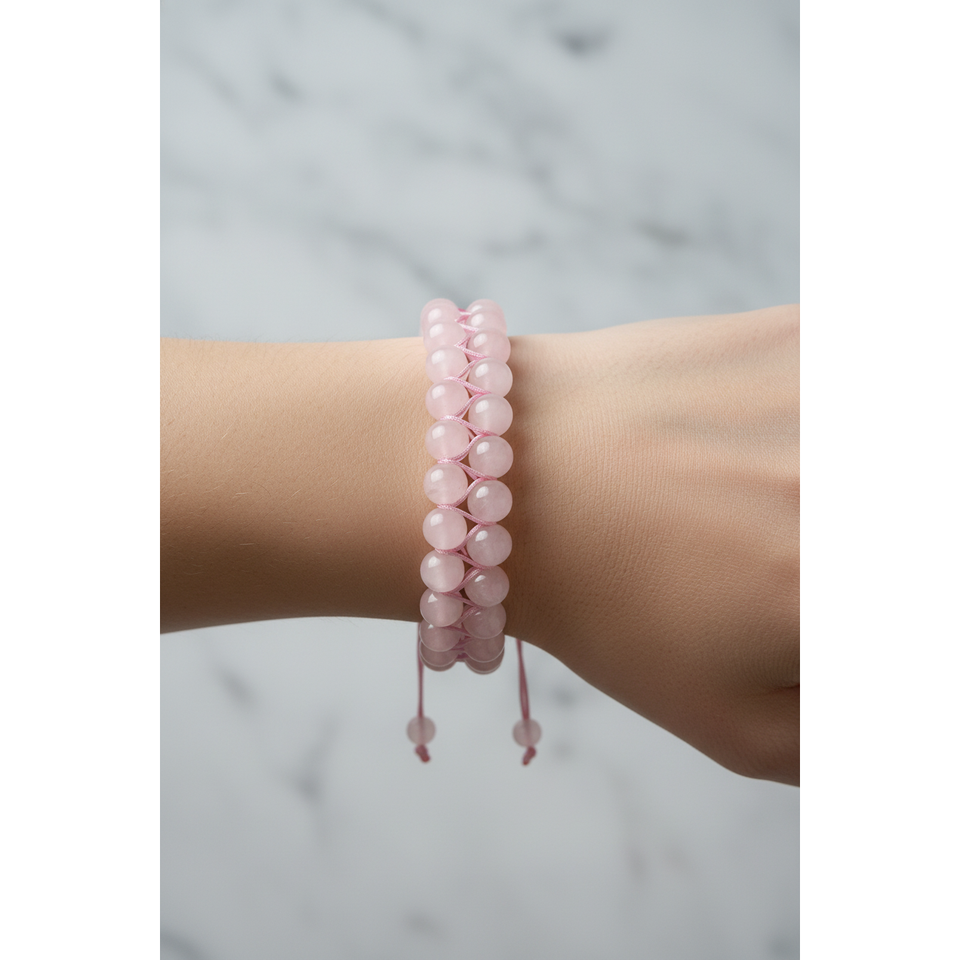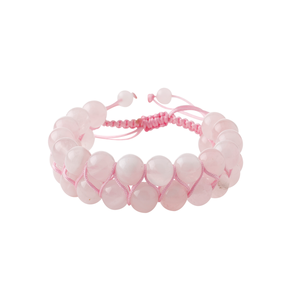 Pink Quartz (Rose Quartz) 8mm Double Row Macrame Natural Stone Bracelet