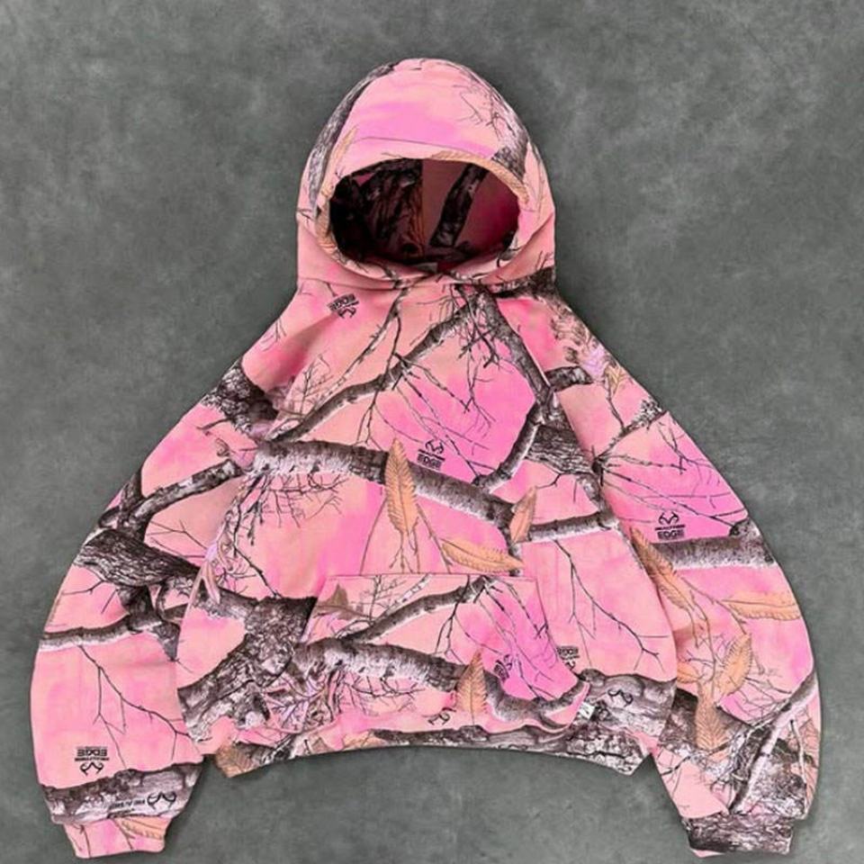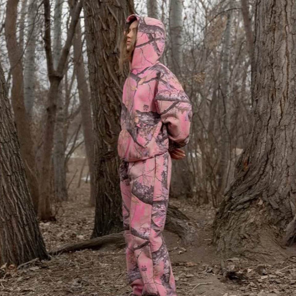 Pink Real Tree Camo Heavyweight Oversize Pullover Vintage Streetwear Custom 100% Cotton All Over Print Sweatpants And Hoodie Set